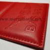 Kırmızı Deri Ruhsat Kabı ürünümüz soft deriden üretilmiştir. Gofre baskılı olan ürün firmaların tercih ettikleri ürünlerin arasında yer akmaktadır. Ürün mukavvalı olup iç kısımları 2 x 2 ruhsat yaprağı 1 adet ehliyet yeri 2 adet kapaklarda göz bulunmaktadır. Deri Ruhsat Kabı dikişleri kırmızı renkte olup isteğe göre farklı renklerde olabilir. Tercih konusu sizin zevkinizdir.
